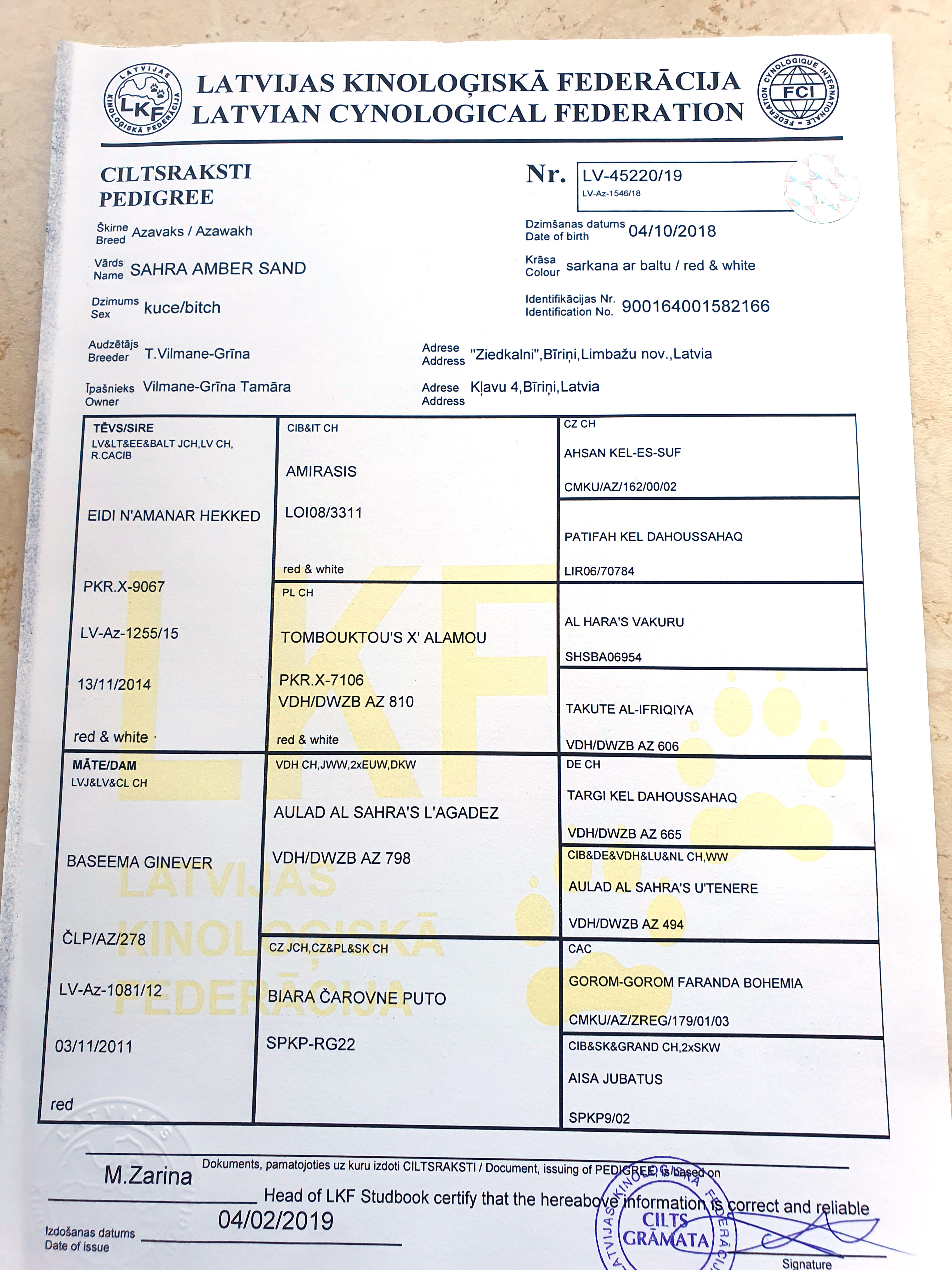 | Ciltsraksti / Pedigree | LV-45220/19 |
